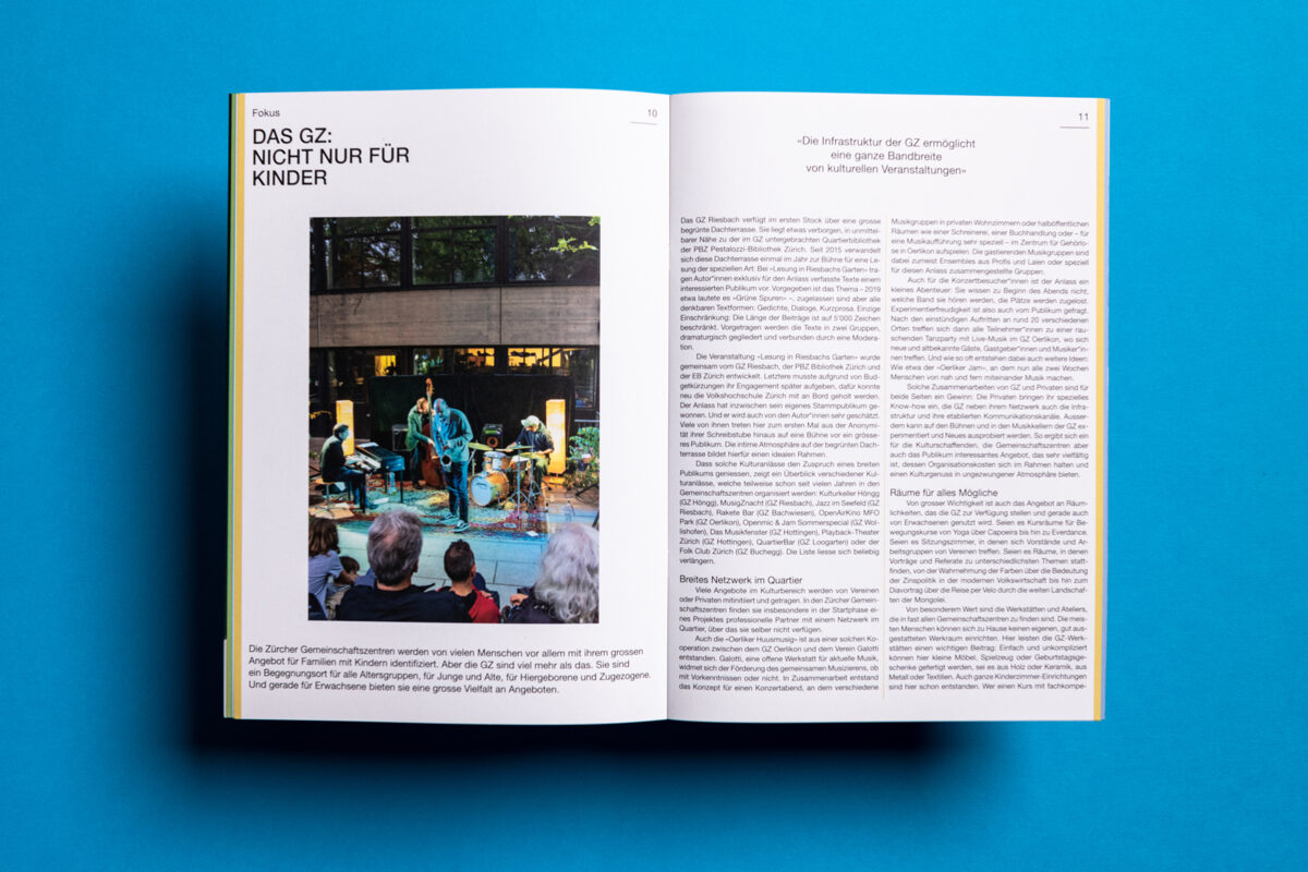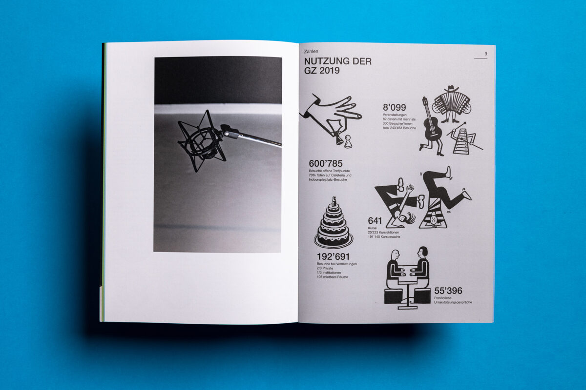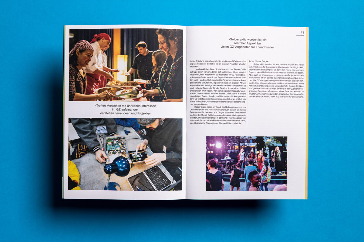 In 2019 more than 1.2 million people visited the 17 Zurich community centres. At 8100 events, in over 100 rooms. The pictures behind the figures in the newly designed annual report.