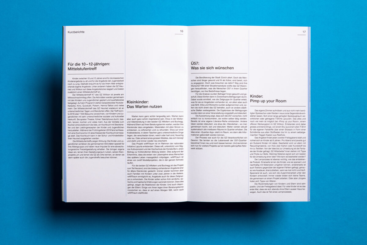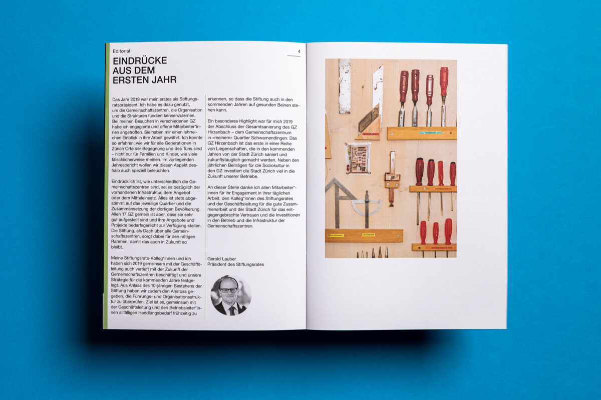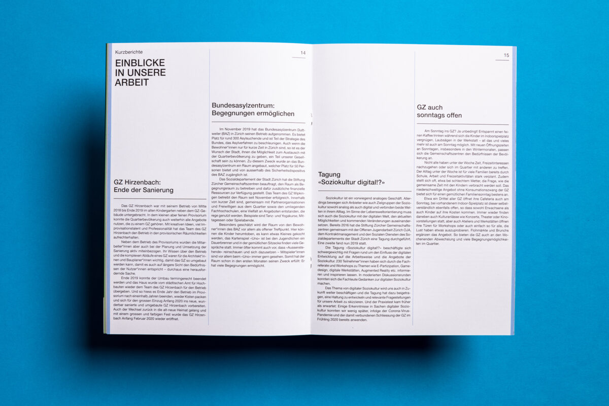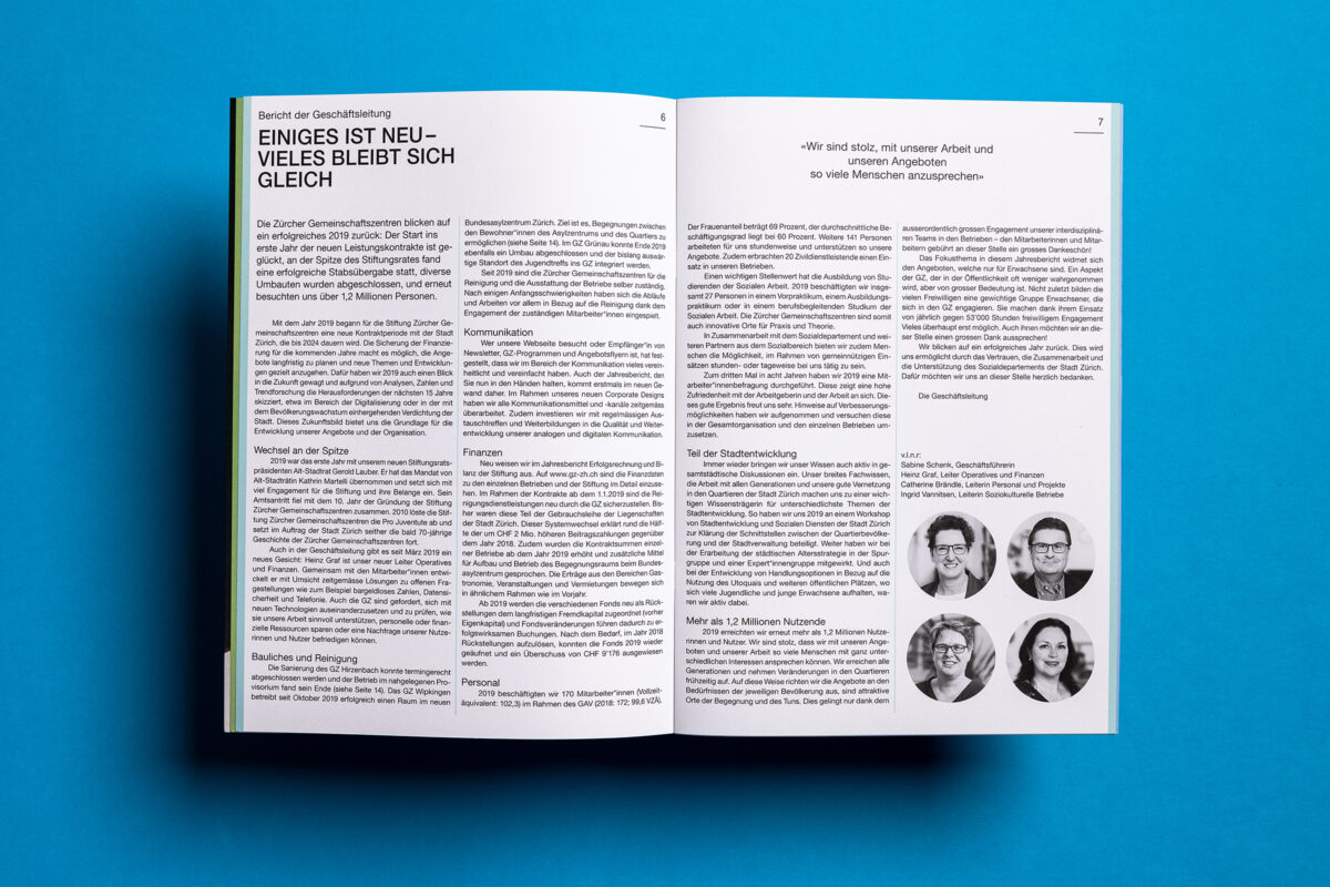 In 2019 more than 1.2 million people visited the 17 Zurich community centres. At 8100 events, in over 100 rooms. The pictures behind the figures in the newly designed annual report.
