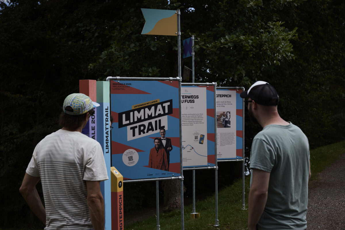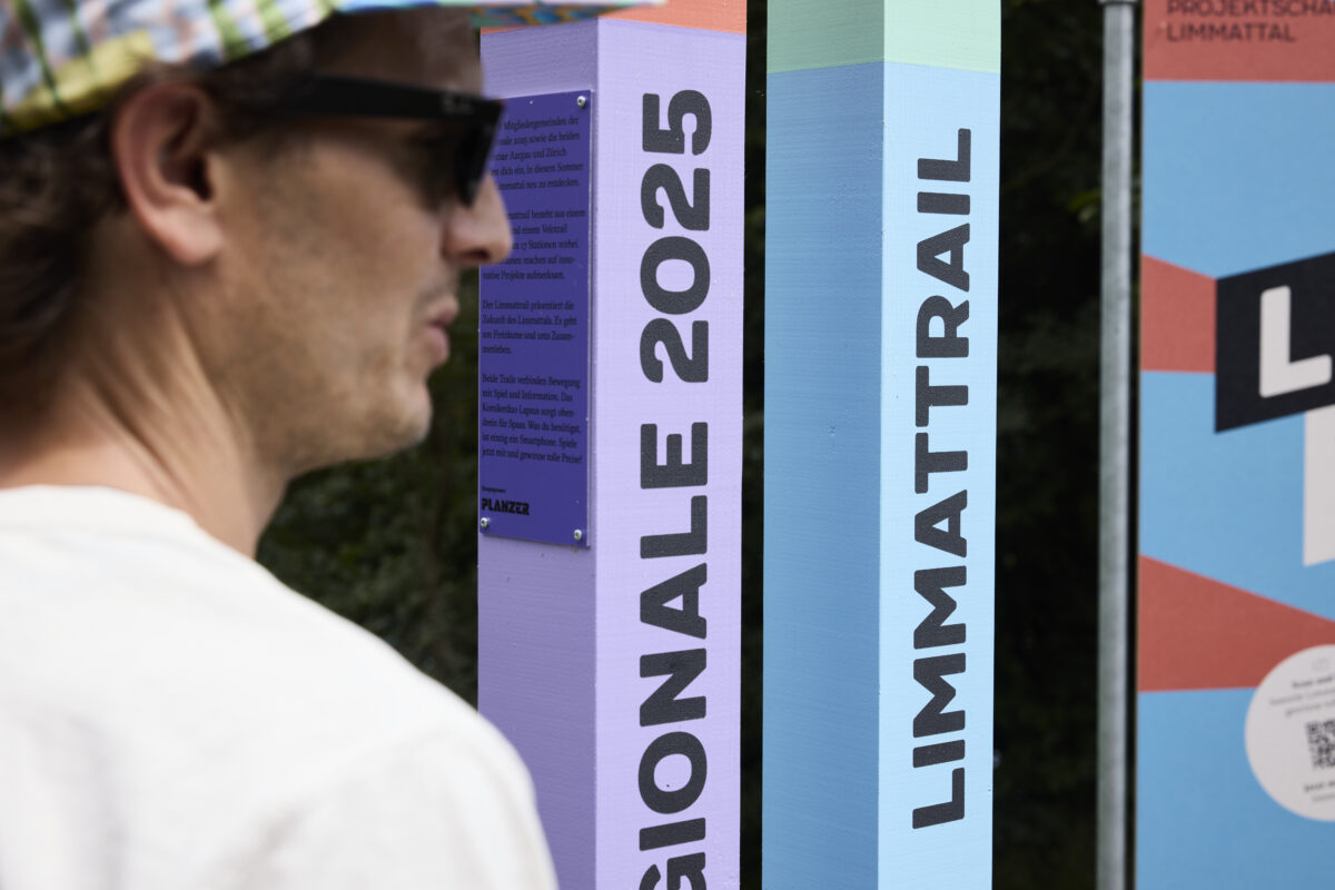 For the regional project show Limmattal, we designed and realised a bicycle and pedestrian trail along the Limmat. With a strong presence on site and a sophisticated web app with an attractive quiz about the projects.