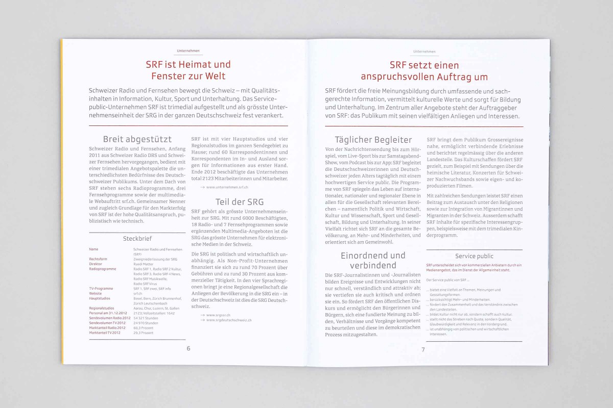 What the financial report is to a company’s shareholders, the programme review of the Swiss public broadcaster is to its fee payers. Who is behind it and how are the ambitious content, editorial and visual demands on a public service provider met day in, day out? The report as an analogue counterpart to digital broadcasting – HD on paper.