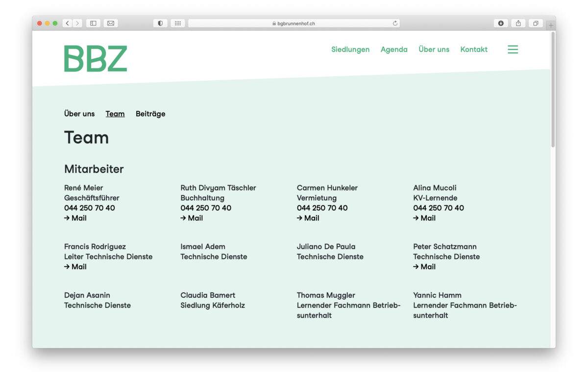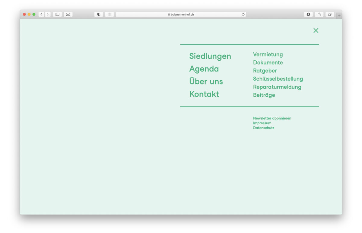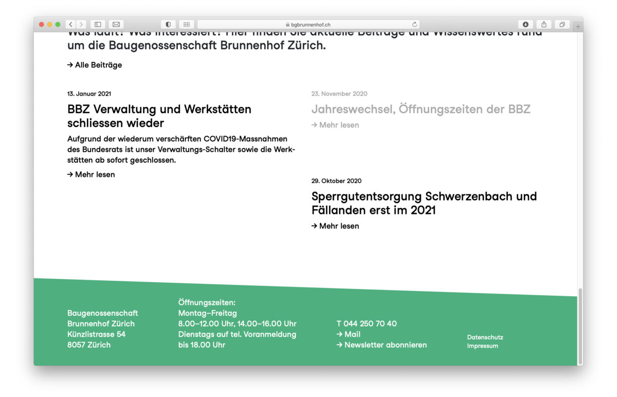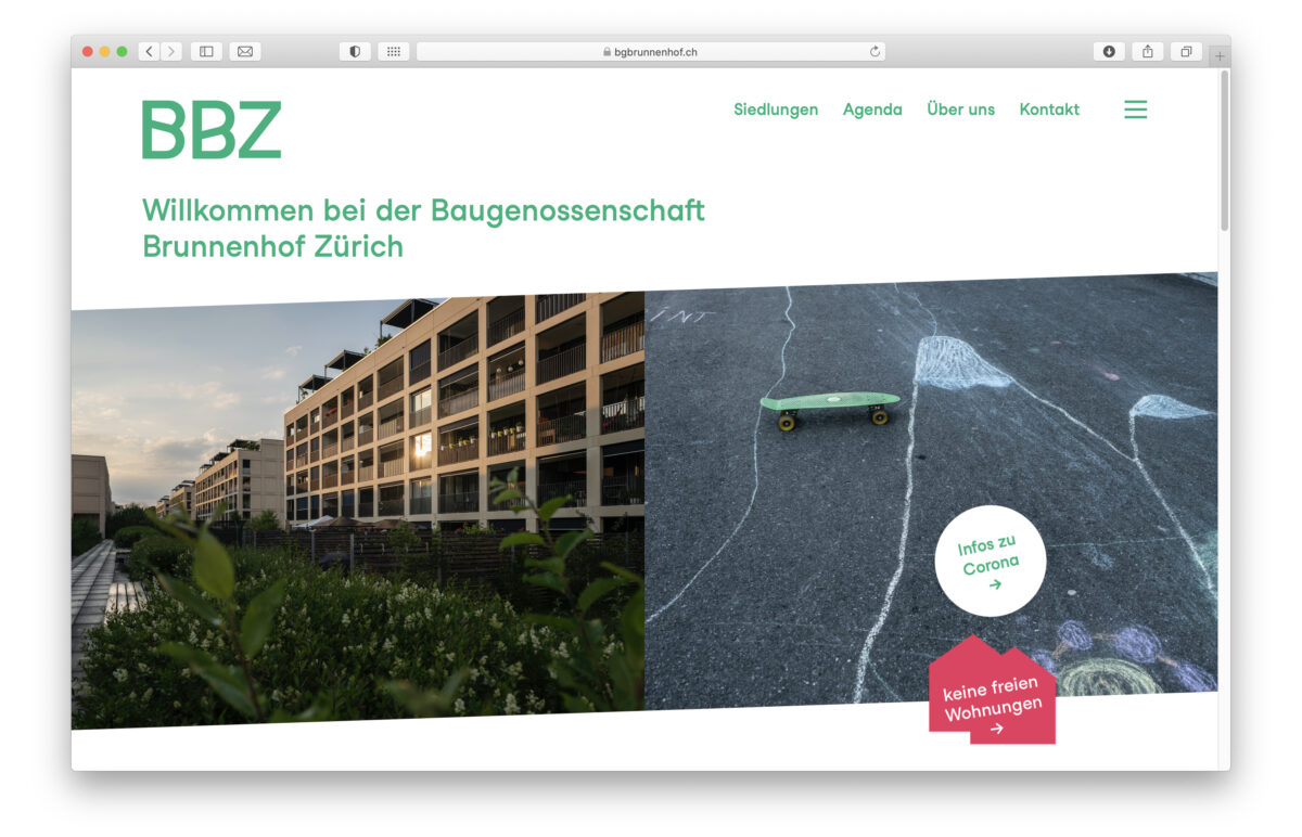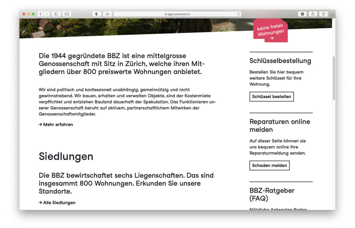 Die sympathische Genossenschaft verwaltet 800 preiswerte Wohnungen. Die neue Website kommuniziert grosszügig und aufgeräumt. bg-brunnenhof.ch Nächstes Projekt
