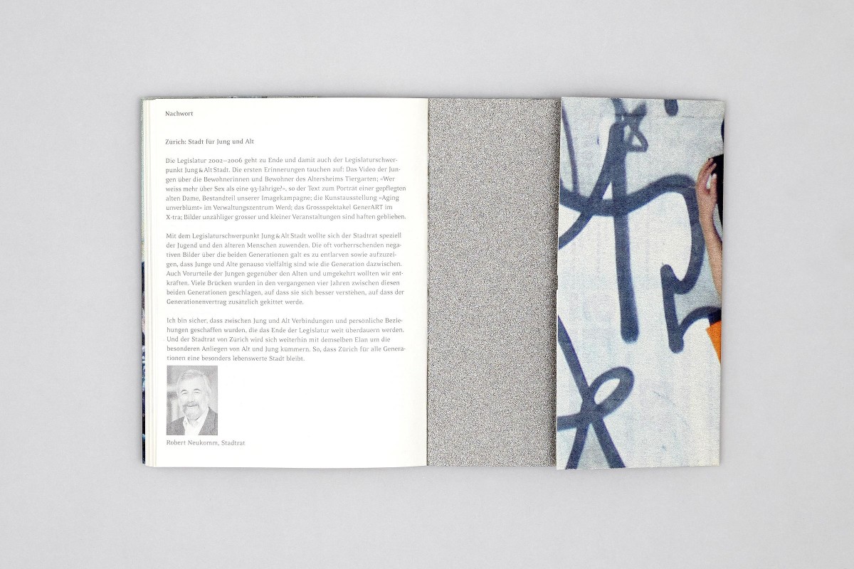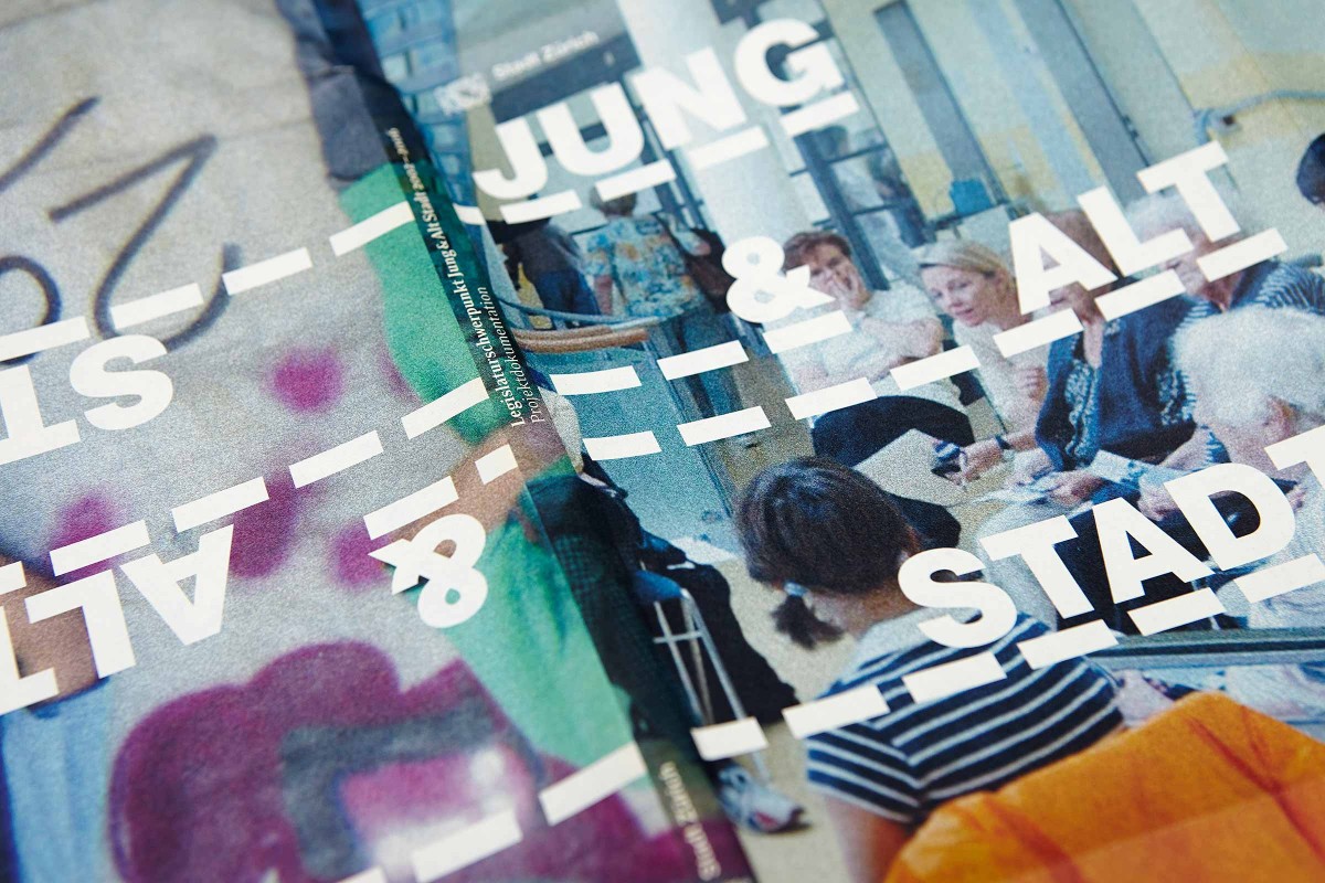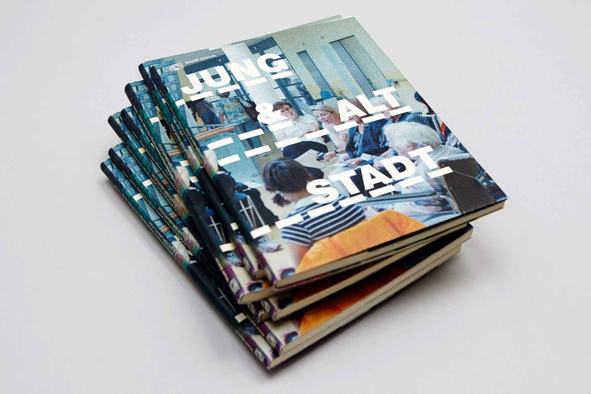 Für den Legislaturschwerpunkt «Jung & Alt Stadt» haben wir ein Buch gestaltet, das die herausragenden zwanzig Projekte zugänglich in Text und Bild dokumentiert. Für Jung und Alt in der Stadt Zürich.