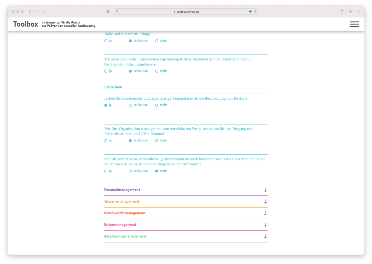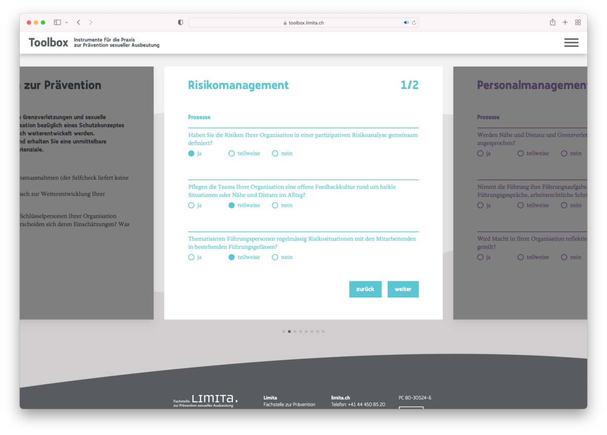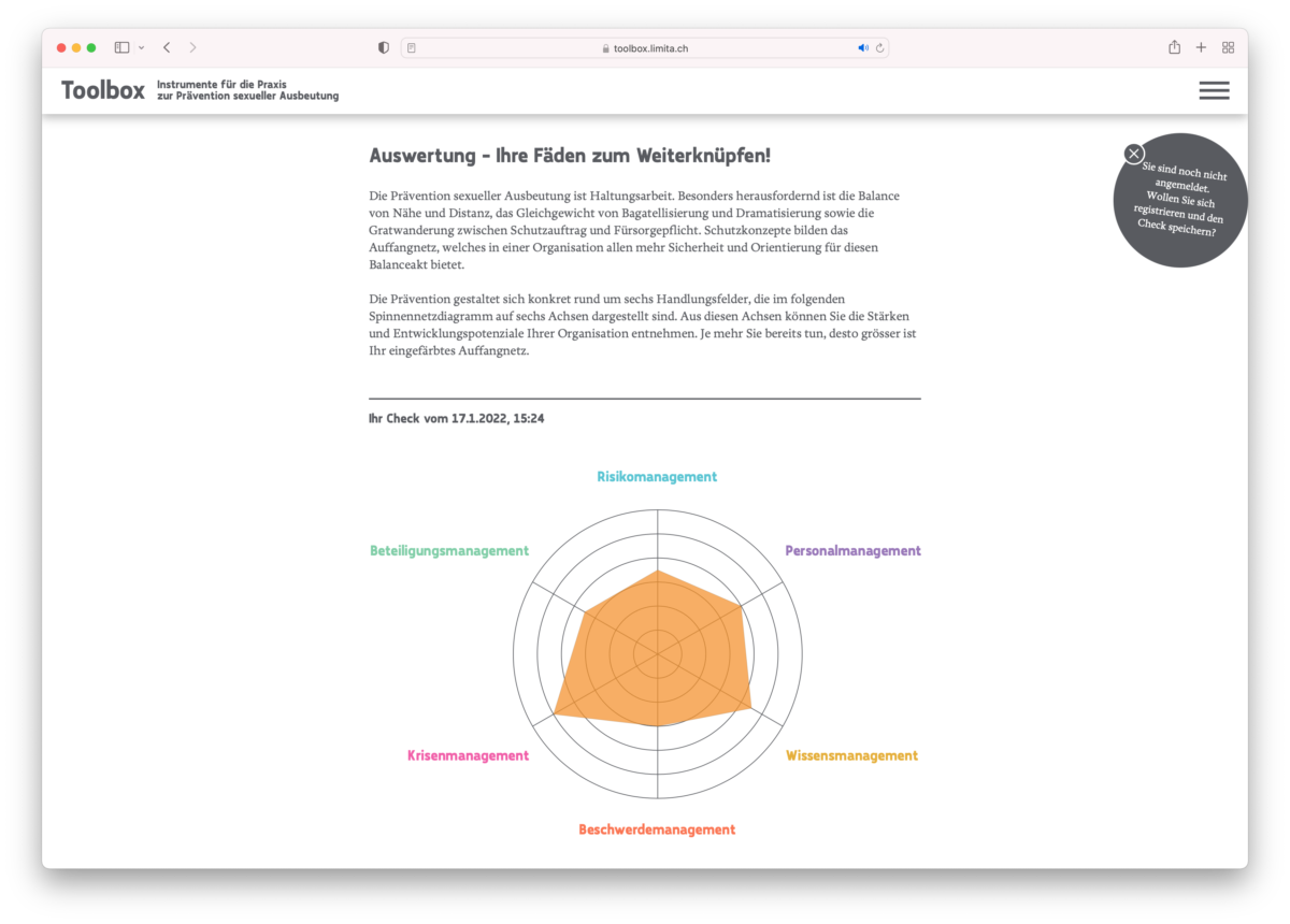 Die Fachstelle zur Prävention sexueller Ausbeutung vermittelt ihre Kernthemen spielerisch online. Eine Fragebogen mit interaktiver Auswertung hilft anschaulich, die eigenen Sicherheits-Lücken zu entdecken und entsprechend anzupassen.