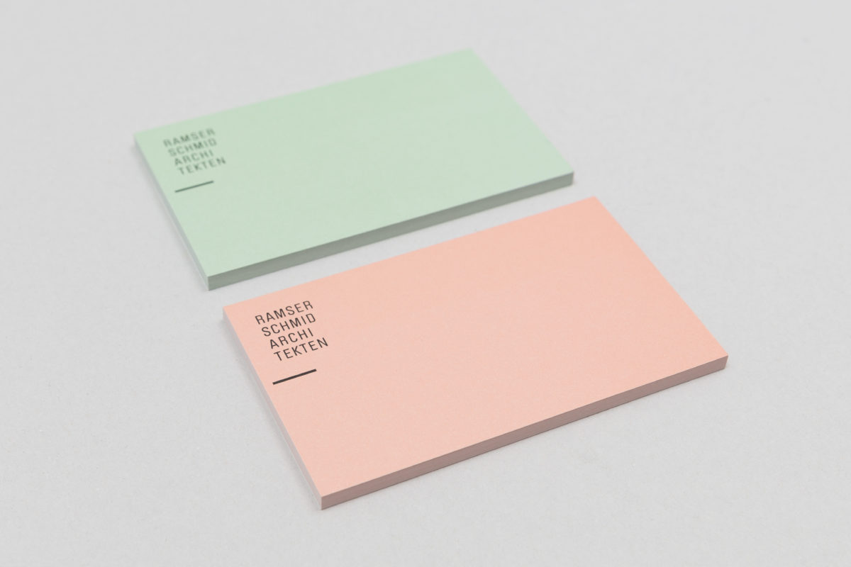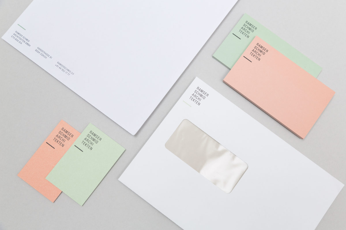 Das neue Erscheinungsbild der Ramser Schmid Architekten besticht durch schlichte typografische Prägnanz im Zusammenspiel mit Format und Farben.