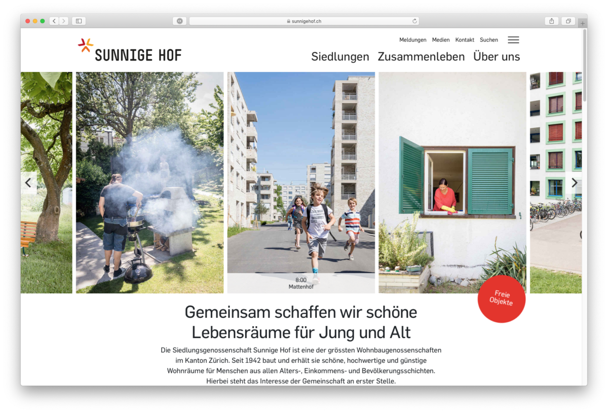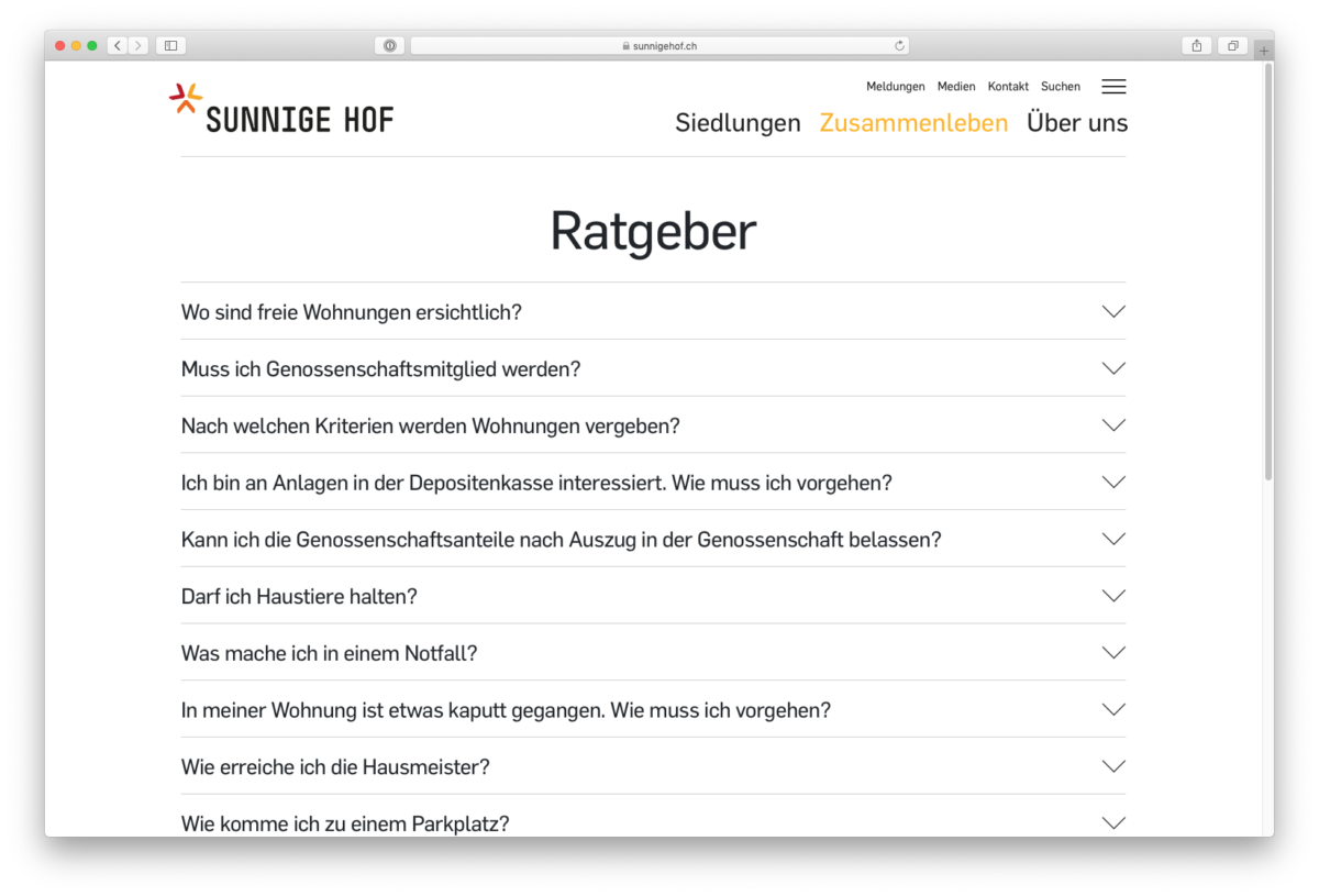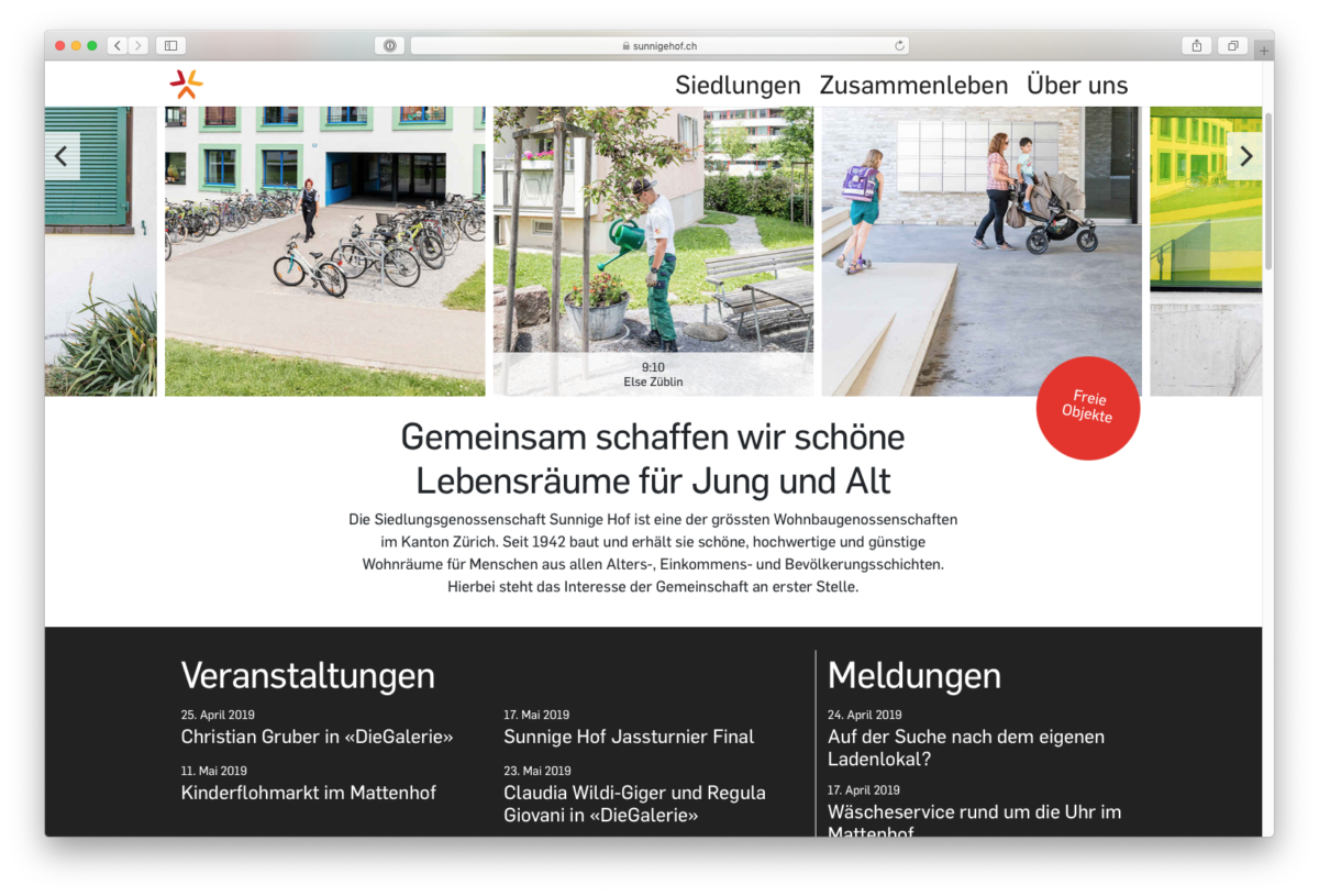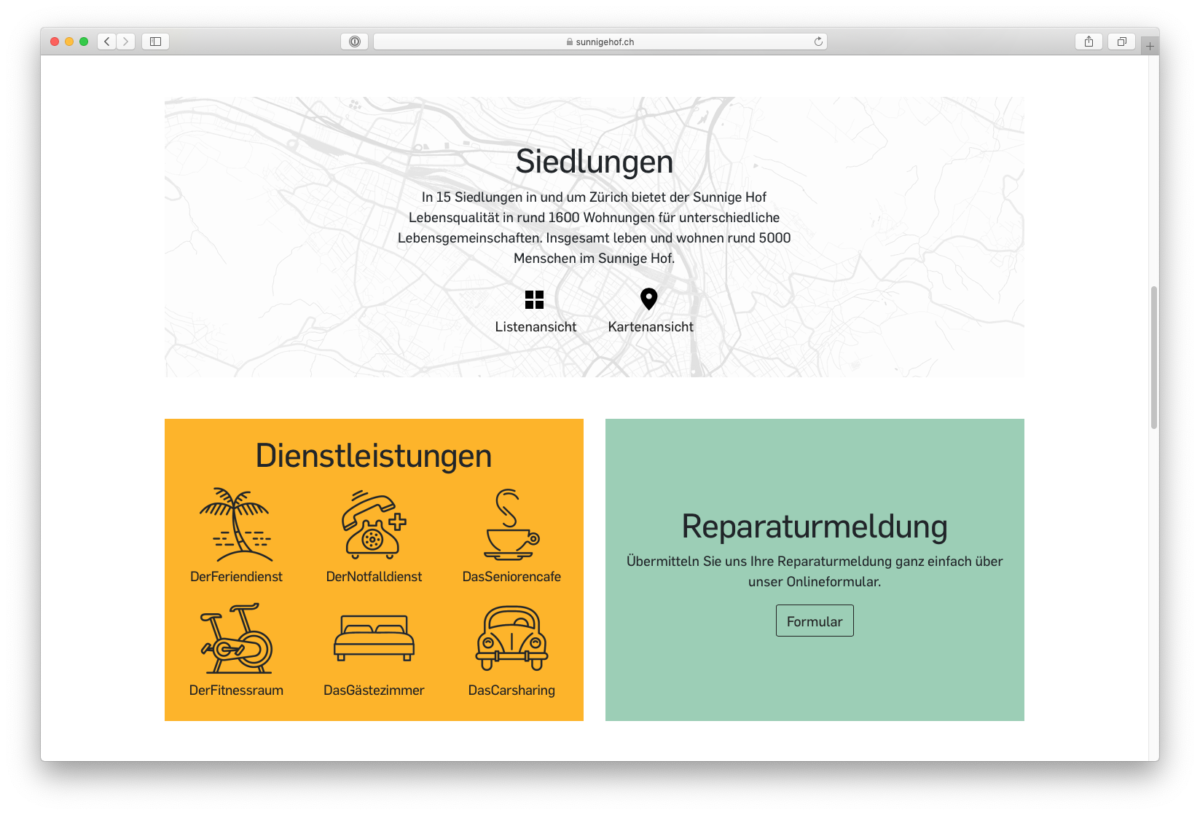 Eine übersichtliche Website für die Siedlungsgenossenschaft und überraschend viele praktische interaktive Funktionen für den täglichen Betrieb.