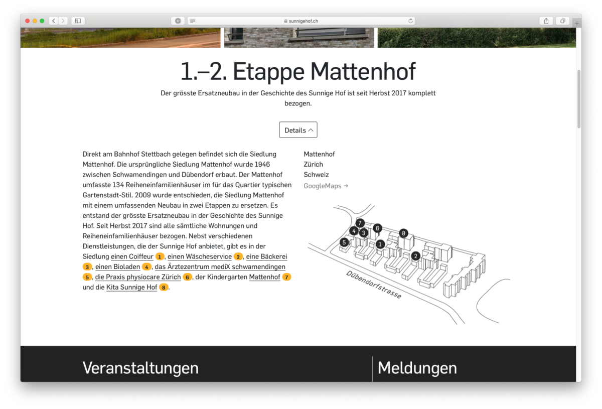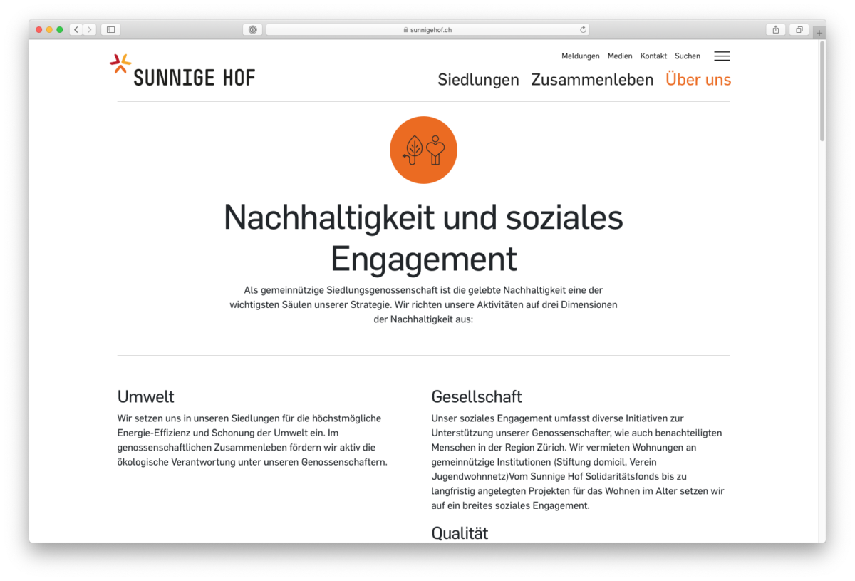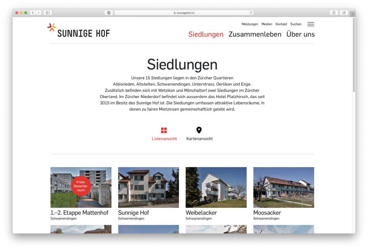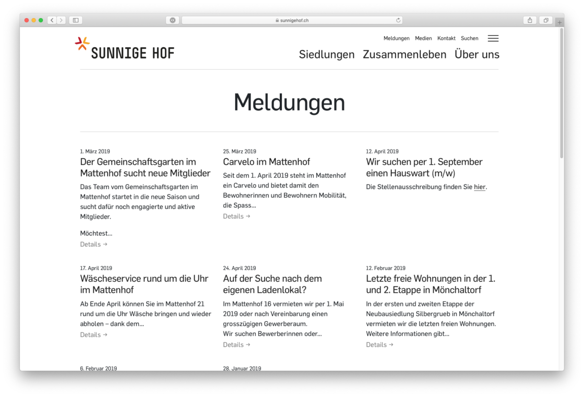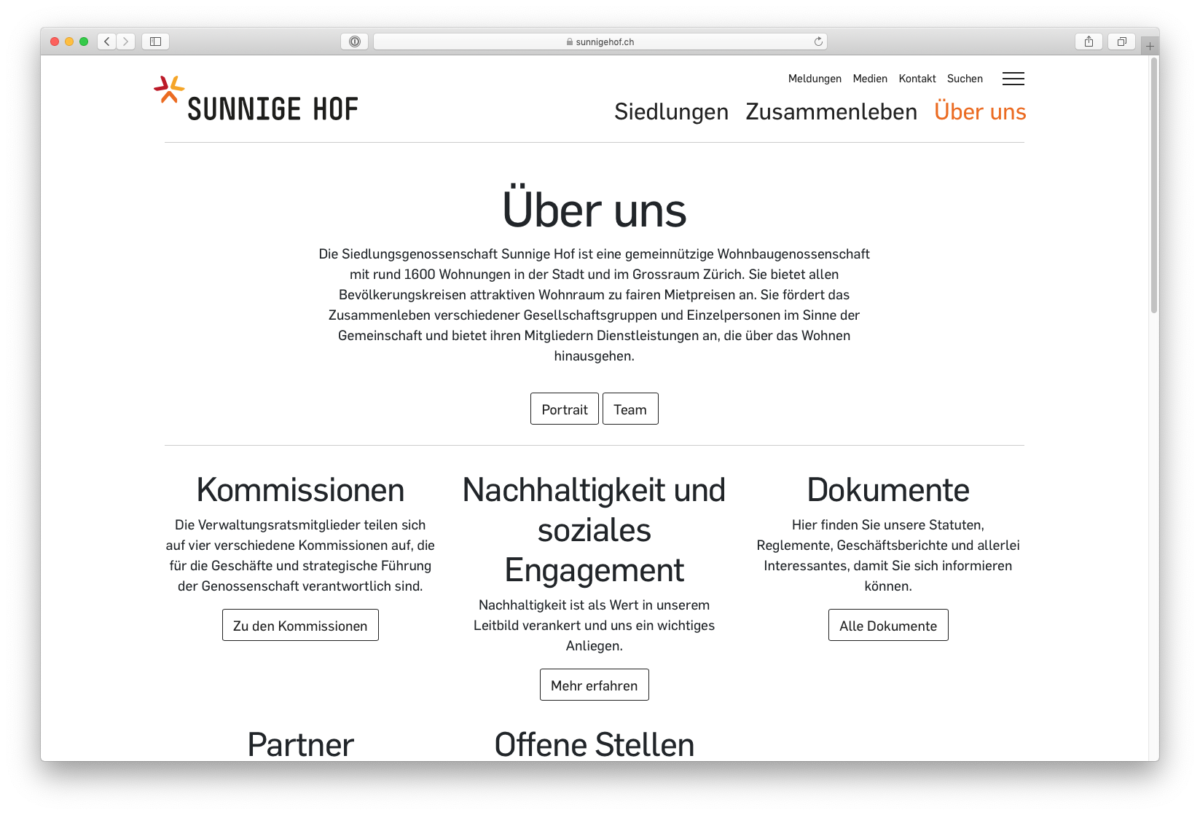 Eine übersichtliche Website für die Siedlungsgenossenschaft und überraschend viele praktische interaktive Funktionen für den täglichen Betrieb.