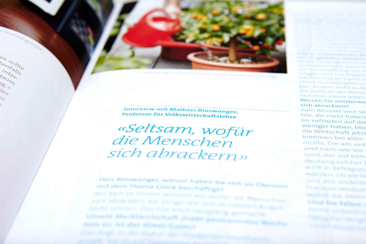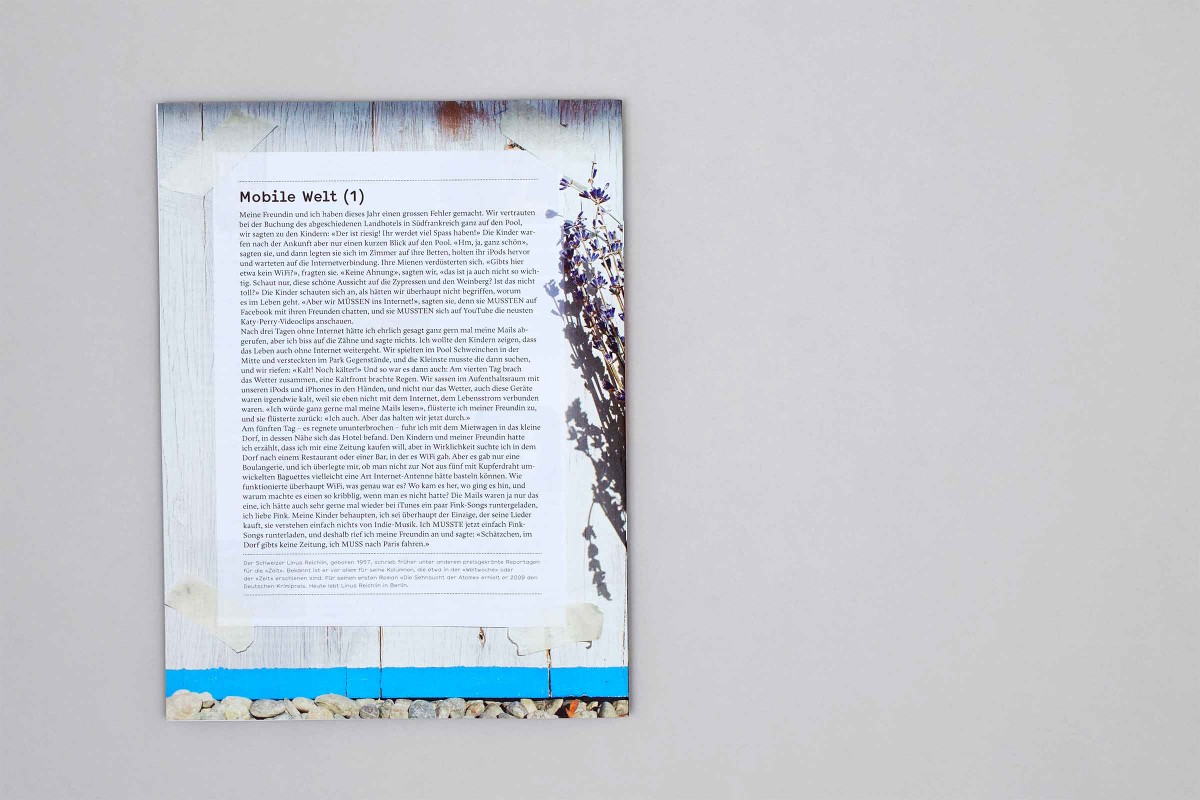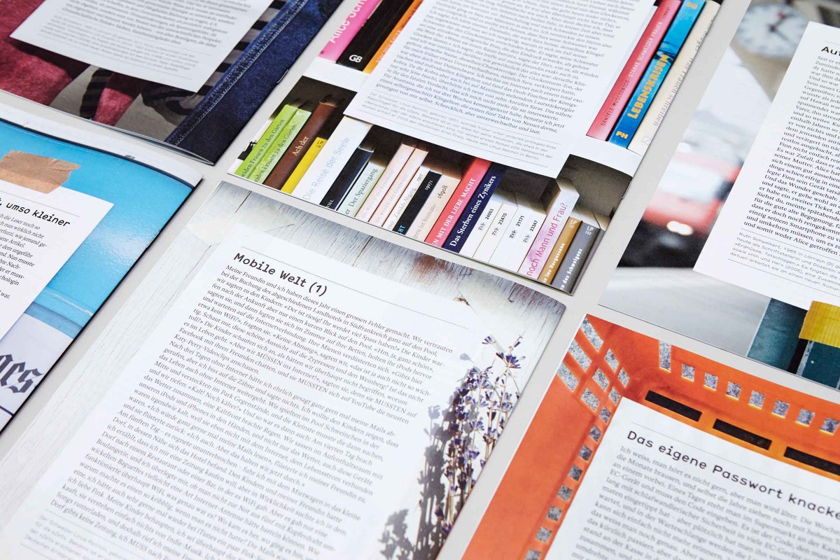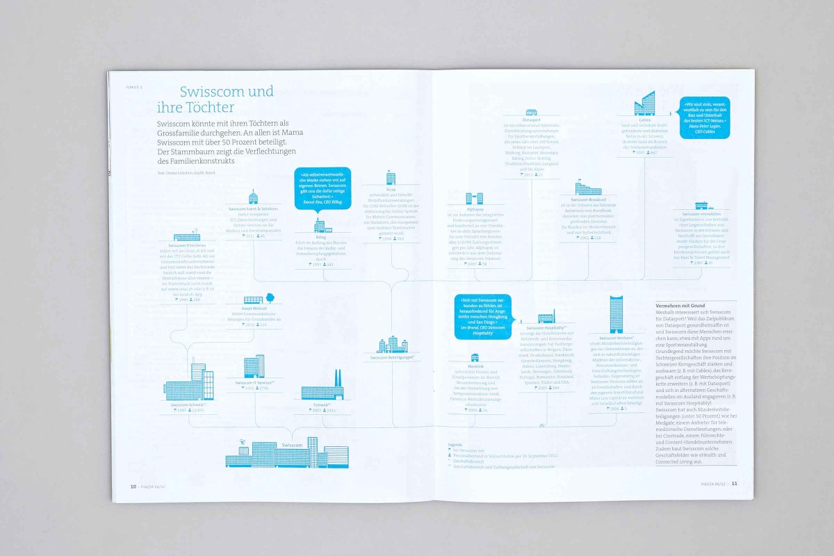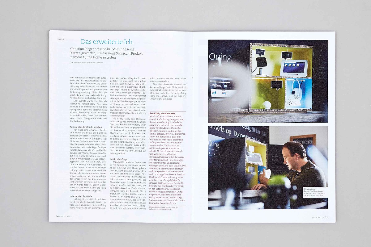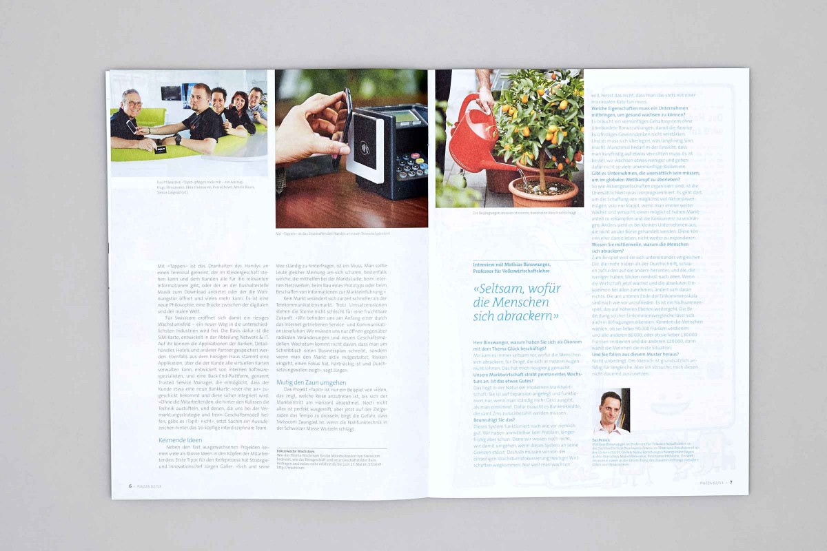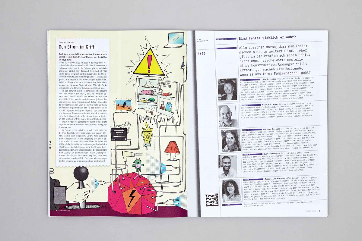 Ein Heft für die Mitarbeitenden von Swisscom. Redaktionell ganz am Puls der Menschen, die dort arbeiten. Die Gestaltung auch. Corporate, und dennoch überraschend andere Rubriken schaffend, um den Rahmen da und dort zu sprengen. Ganz im Sinne eines Magazins von heute.