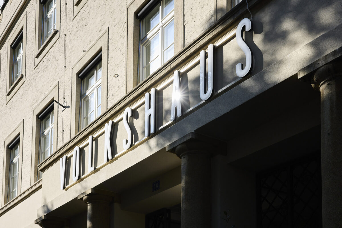 Das Volkhaus Basel wurde komplett renoviert und erhielt im Rahmen des neuen Brandings auch die entsprechende Signaletik. volkshaus-basel.ch Nächstes Projekt