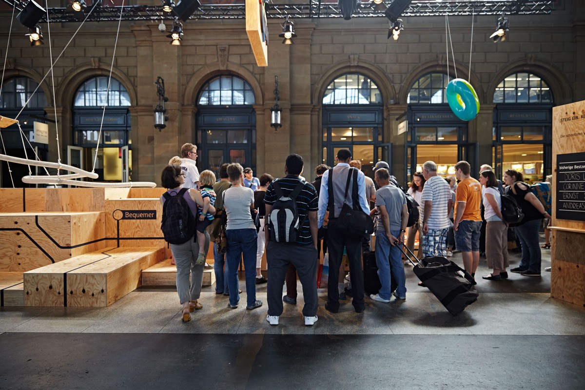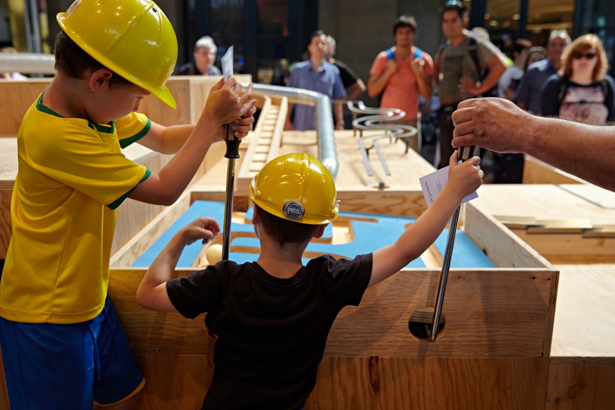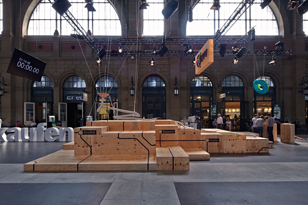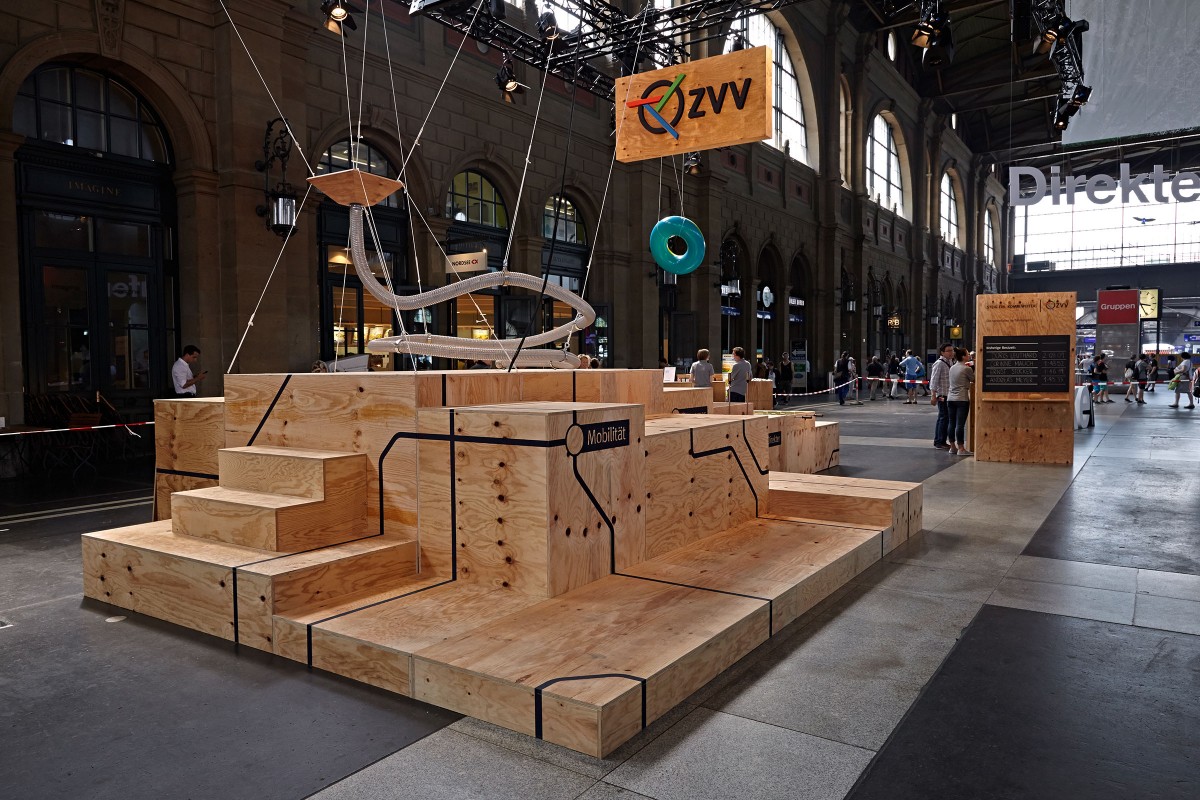Anlässlich der Eröffnungsfeier des Jahrhundert-Bauprojekts der «SBB Durchmesserlinie» entwickelten wir für den Zürcher Verkehrsverbund eine überdimensionierte Kugelbahn. Wer schafft die schnellste Verbindung von Oerlikon zum Hauptbahnhof? Frau Bundesrätin Leuthard und weitere illustre Persönlichkeiten aus Wirtschaft und Politik weihten die Bahn ein und setzten Bestzeiten, die es dann zu unterbieten galt.